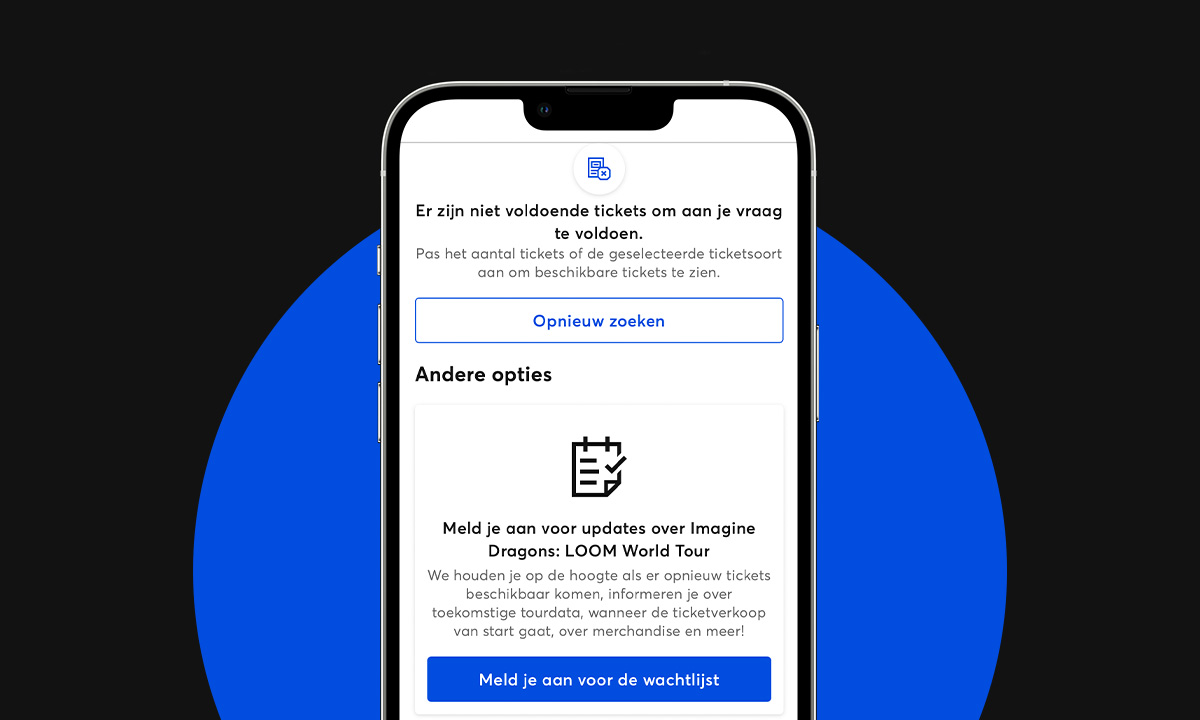 Als een evenement uitverkoopt, blijven er vaak nog fans teleurgesteld en zonder ticket achter. Dat willen we natuurlijk niet en misschien hoeft het ook niet. Met onze nieuwe tool geef je fans de kans hun gegevens achter te laten zodra er geen
